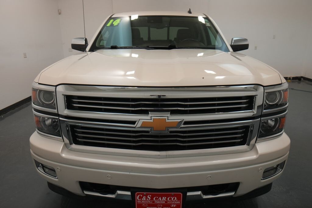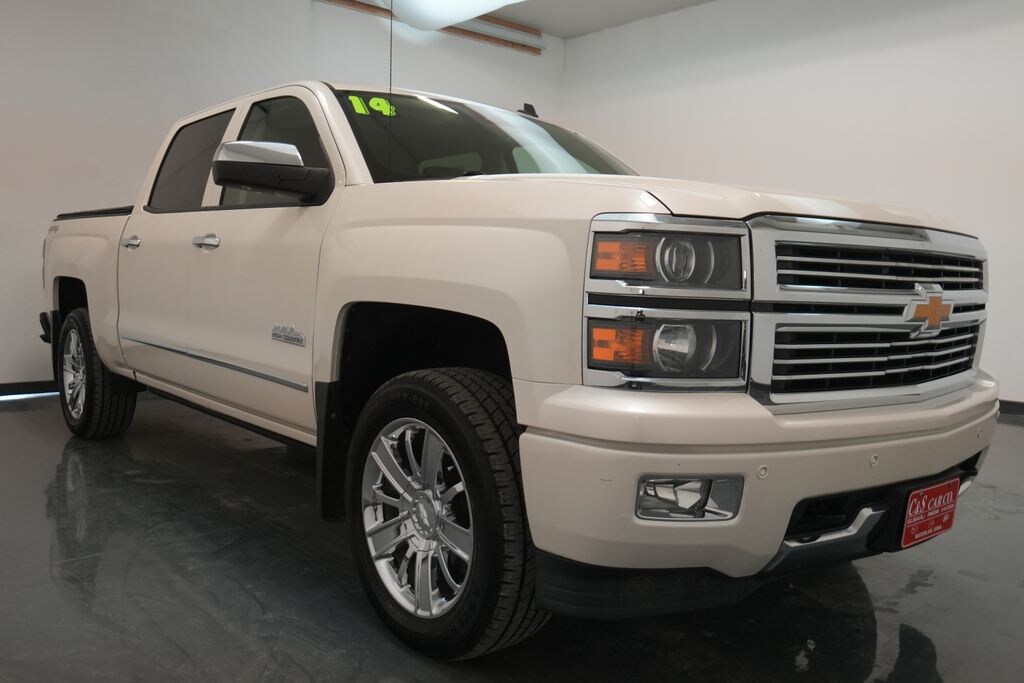 Odometer is 58678 miles below market average! Summit White 2014 Chevrolet Silverado 1500 4D Crew Cab High Country EcoTec3 5.3L V8 Flex Fuel 16/22 City/Highway MPG 6-Speed Automatic Electronic with Overdrive 4WD