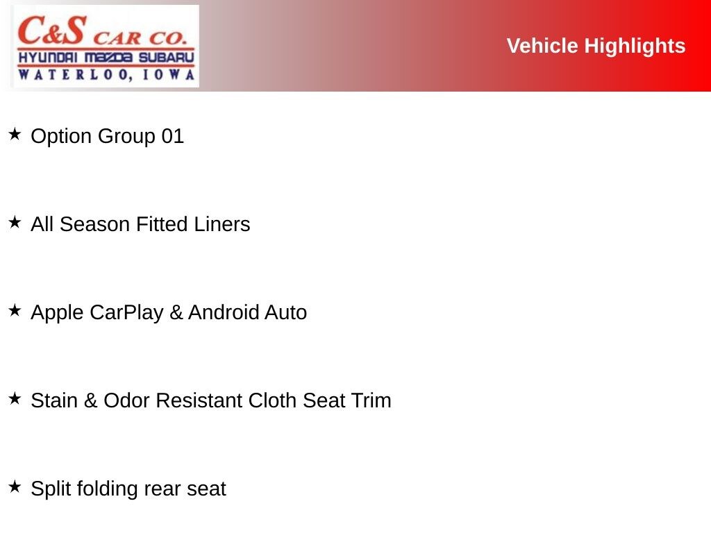 The interior of this Tucson is thoughtfully designed with your comfort and convenience in mind. Sink into the stain-resistant cloth seats and take advantage of the available front center armrest for a relaxed driving experience. The split-folding rear seats provide versatility to accommodate your cargo needs, whether you're hauling gear for a weekend getaway or transporting larger items.