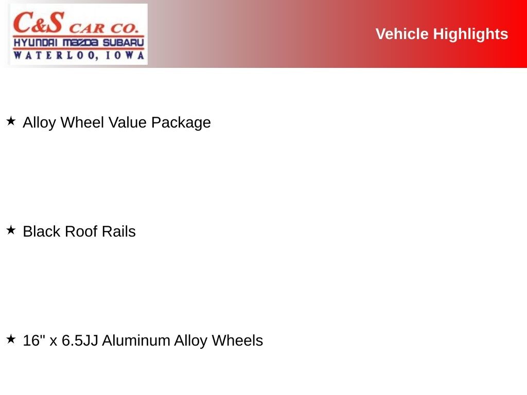 16" x 6.5JJ Aluminum Alloy Wheels, Alloy Wheel Value Package, Black Roof Rails.